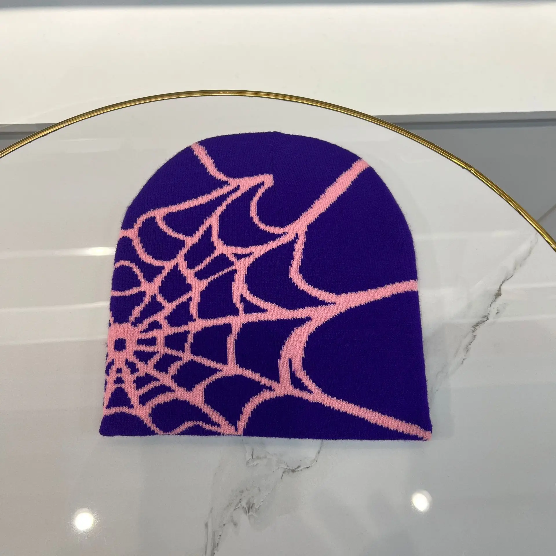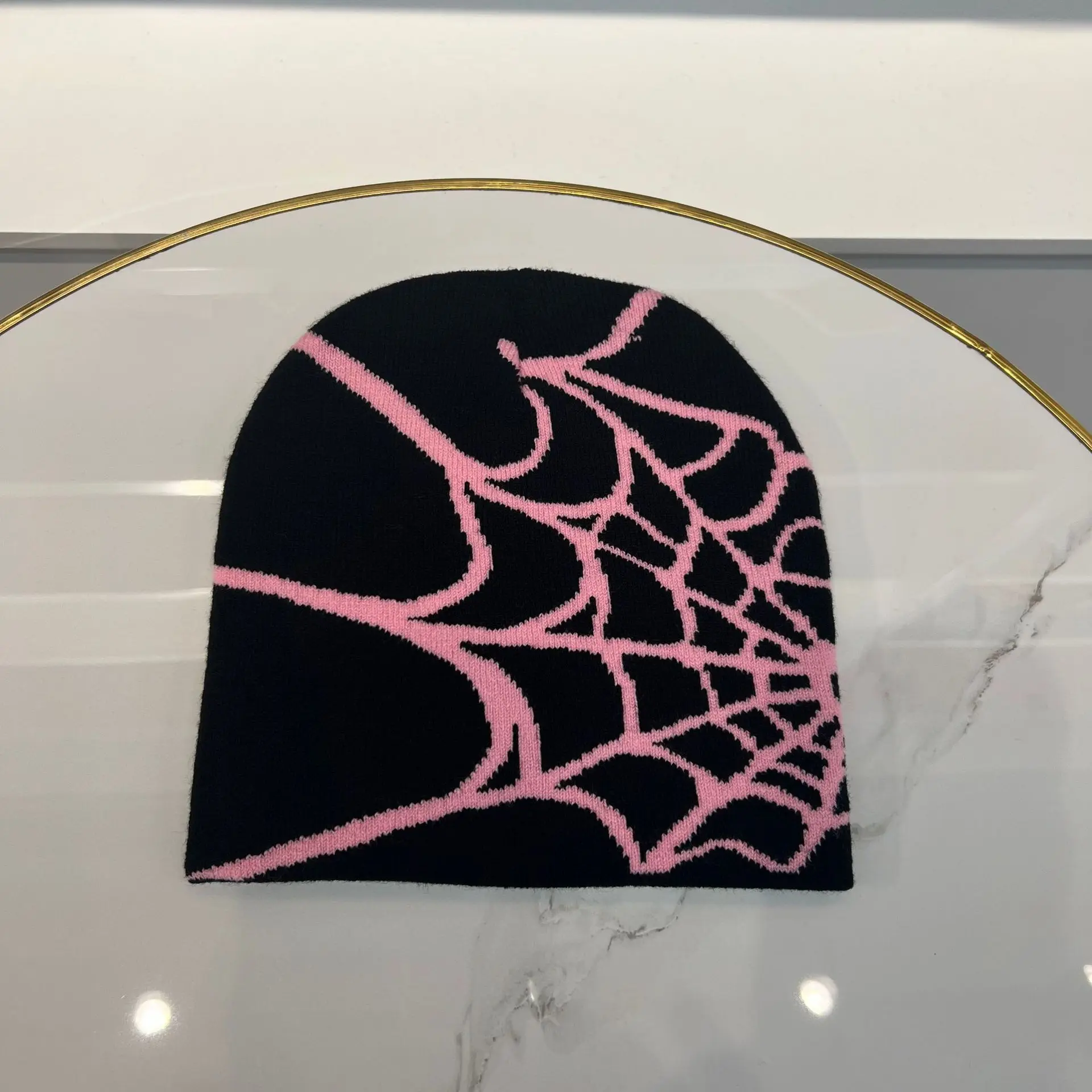 Unisex beanie with spider web print.
